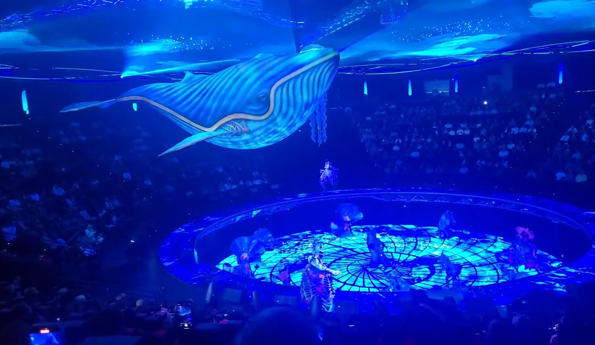 The theater itself is one of the most technologically advanced ever designed, and the behind-the-scenes talent, like legendary producer Bernie Yuman, producer/director Baz Halpin, narrator Sir Anthony Hopkins, and award-winning puppet master Michael Curry, is top-notch. Curry, known for his award-winning work on The Lion King on Broadway, does not disappoint with his puppet creations for Awakening, including an enormous whale that swims around the stage and temporarily convinces the audience that it’s underwater.